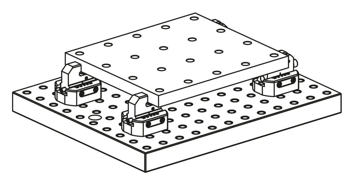 Grâce aux différents pieds de positionnement et au réglage fin, la hauteur de serrage de la pièce à usiner peut être réglée de manière flexible.