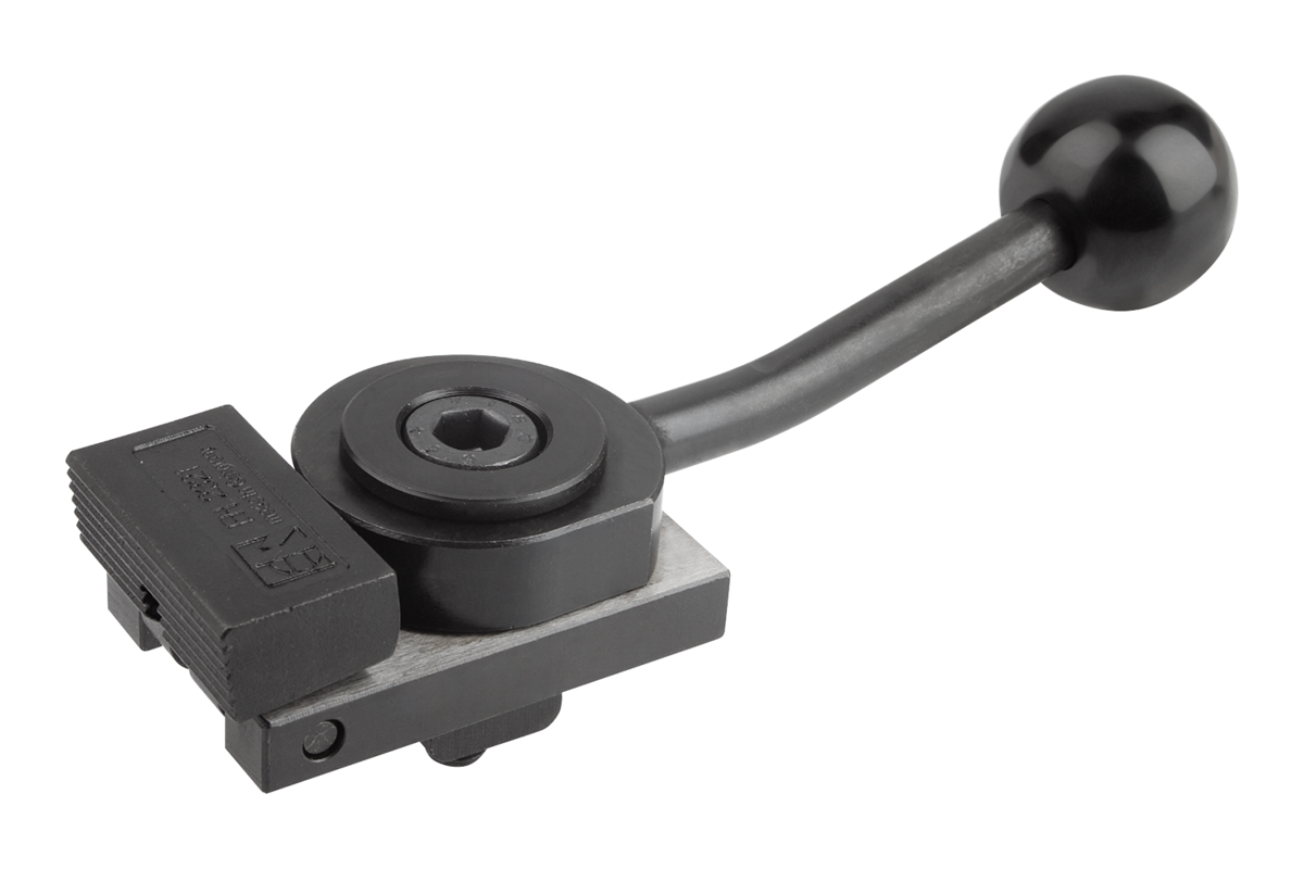 Le crampon plaqueur à levier permet de serrer rapidement une pièce à usiner. La faible hauteur permet de rendre la pièce à usiner plus accessible et évite souvent la réalisation d´un montage spécifique. Lors du desserage, un ressort rappelle le mors automatiquement.