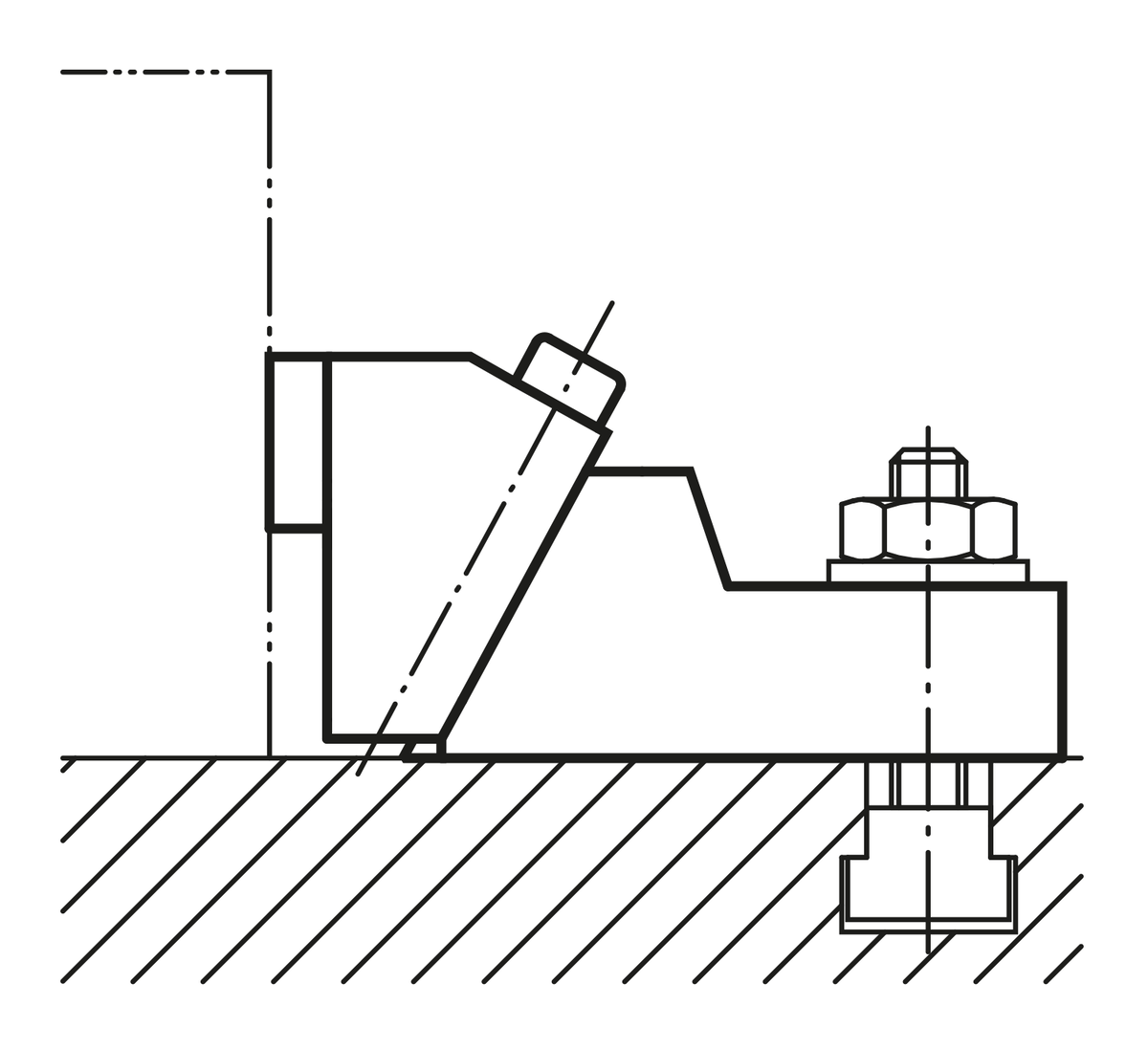 Les mors de serrage pivotants, présentent une surface d’appui lisse pour les surfaces usinées, et une surface d’appui crénelée pour les surfaces brutes. Pour fixer les crampons sur la table de la machine, nous recommandons d'utiliser deux vis de serrage. Utiliser des boulons en T à filetage roulé, 07040 (à commander séparément).