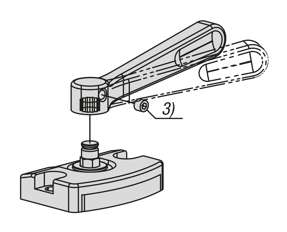 La poignée indexable sur la forme C peut être orientée horizontalement et verticalement par pas de 30° en desserrant la vis sans tête.
