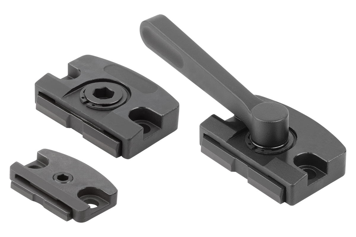 Crampons plaqueurs avec excentrique, forme C, sans cimblot avec poignée indexable