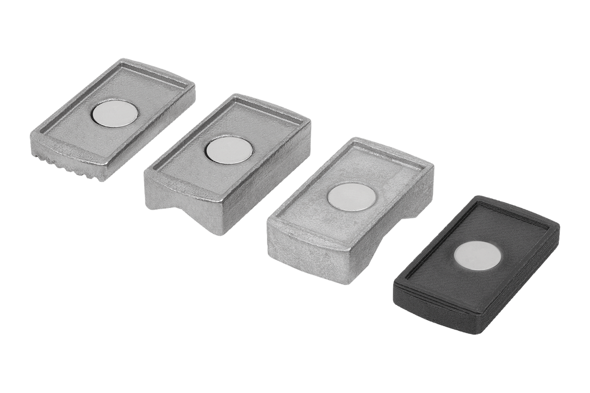 Ces patins peuvent être montés de manière simple et rapide sur le patin du tendeur compact au moyen d’un aimant intégré.