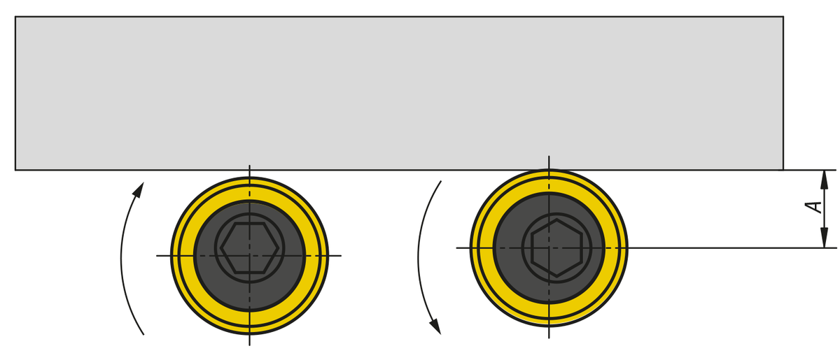 Le sens de rotation recommandé pour le serrage est le sens horaire. Le six pans creux de la vis doit se trouver à droite à l’issue du serrage. (Visser la vis excentrique jusqu’à la butée, puis la dévisser d’un tour).