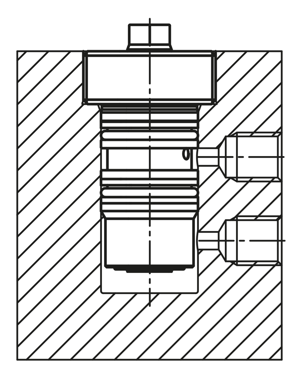 En raison de la forme compacte des vérins à visser, aucune butée n'est intégrée à l'intérieur pour la course de retour du piston. Il convient de respecter la profondeur de montage indiquée pour les vérins à visser, car le fond du perçage de montage leur sert de butée pour la course de retour.