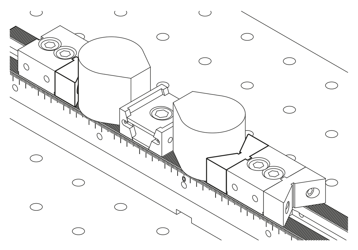 Les mors superposés avec prisme sont utilisés pour le serrage de pièces rondes. La rainure oblongue à l'arrière permet un ajustage précis aux mors fixes ES et DS.