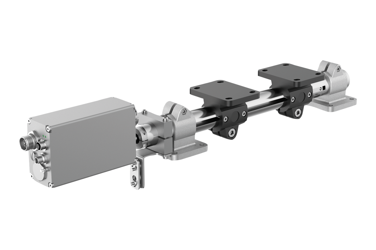 Le concept de montage prévoit un palier fixe et un palier libre. Le palier fixe absorbe la masse du servomoteur qui est monté directement par adhérence sur l’arbre de la machine via un arbre creux emboîtable avec bague d’arrêt. Le bras de couple empêche le servomoteur de tourner et fait office de palier libre pour compenser les éventuels mouvements de déséquilibre au niveau de l’arbre entraîné.