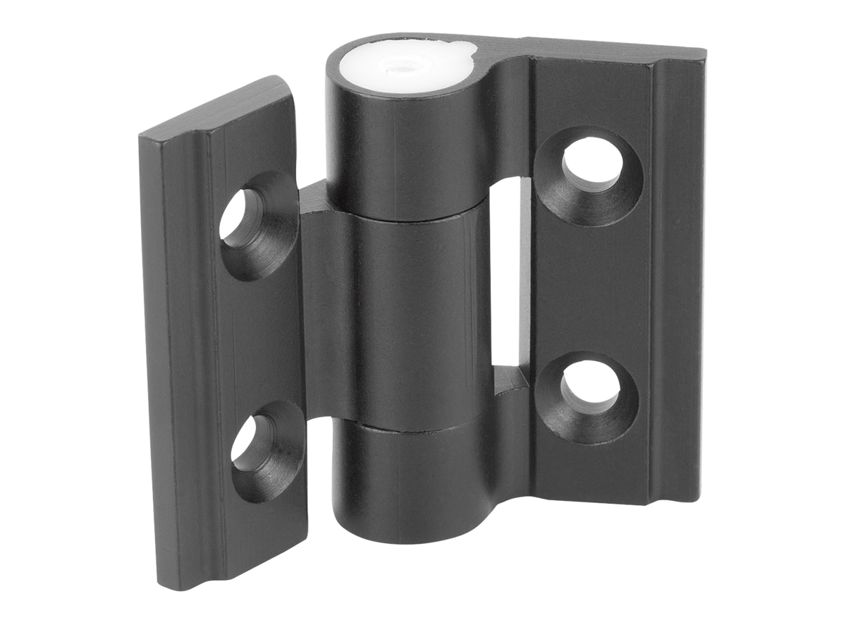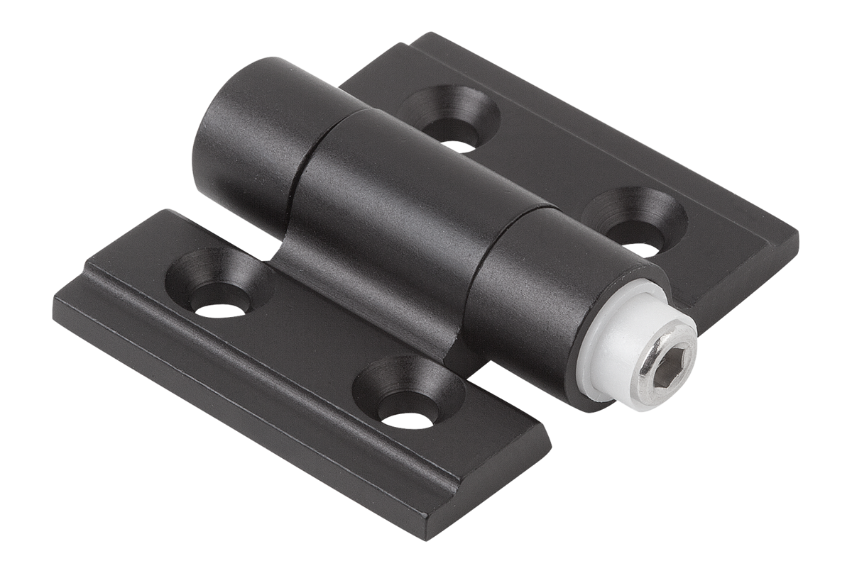 These torque hinges enable doors to remain open in any position. A set screw enables the amount of friction to be infinitely adjusted between 0-1 Nm.
