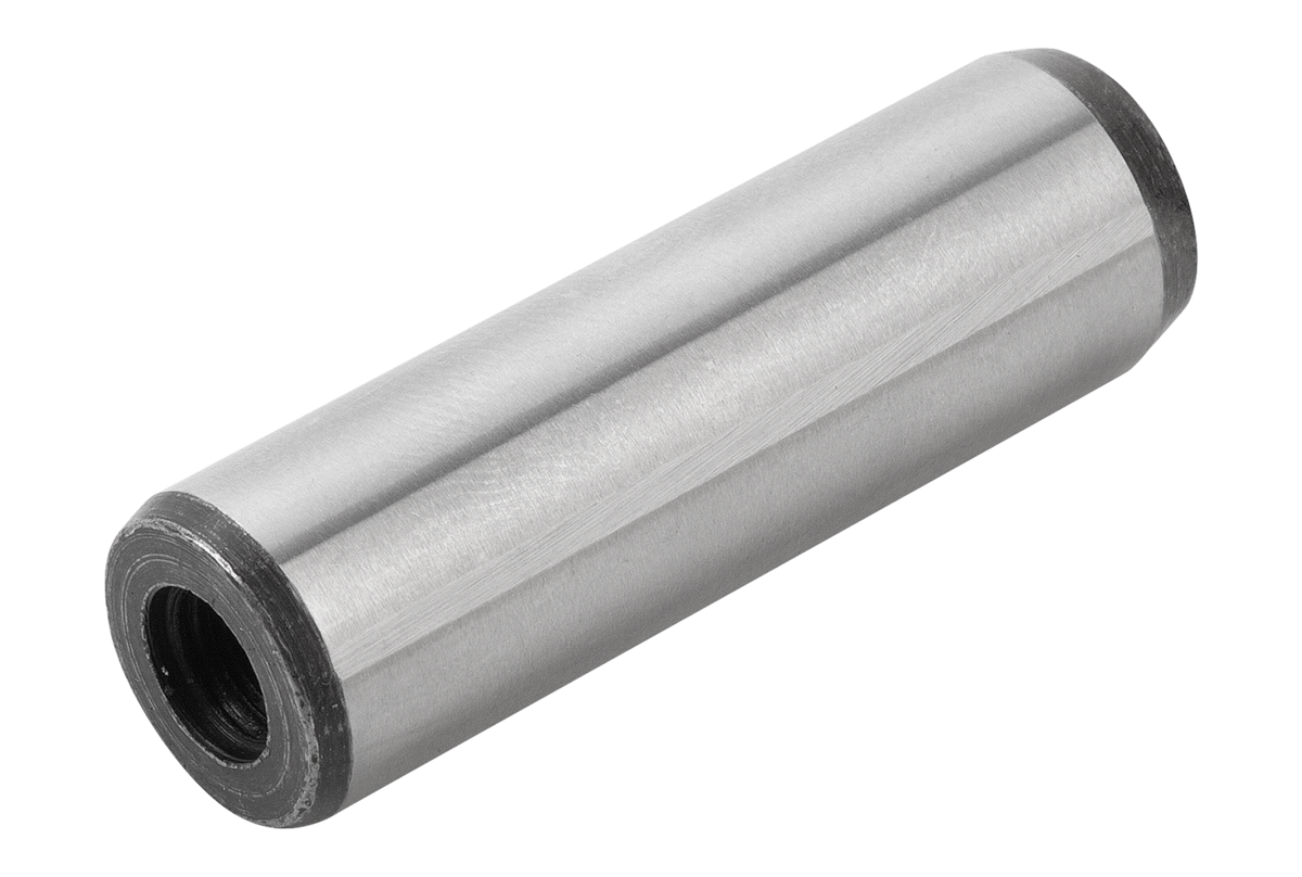Tapped cylindrical pins are chiefly used in blind holes. The milled flat prevents air compression in blind holes. The tapping makes it possible to use the extractor 03328.
