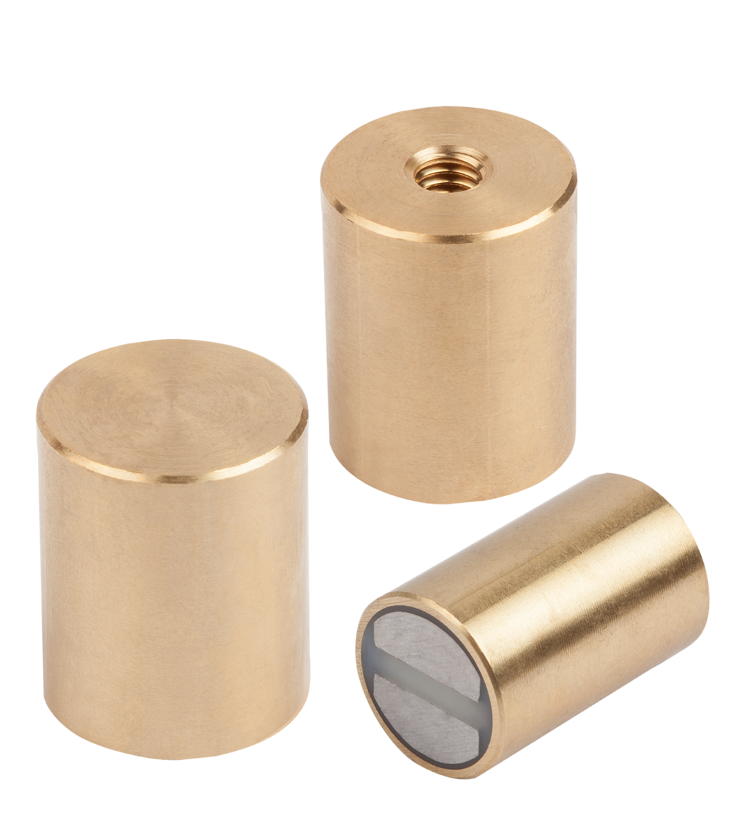 Smooth design, shielded system. Diameter “D” ground with h6 tolerance. Under no circumstances may SmCo magnets be pressed directly into iron, loss of attractive force due to magnetic short circuits occurs. SmCo magnets are especially suitable for direct use in spot-welding machines, as no demagnetisation occurs.