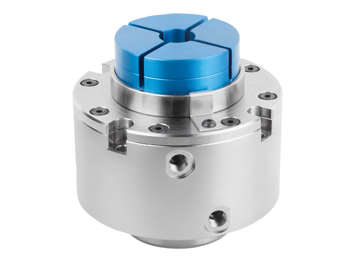 The pneumatic collet system consists of a chuck and a machinable collet.