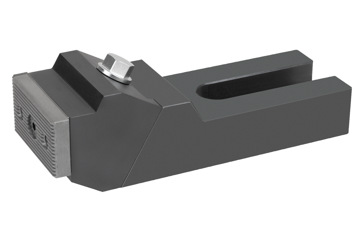 Les mors de serrage peuvent être utilisés des deux côtés. Face lisse pour les pièces usinées, face striée pour les surfaces brutes. Deux vis de serrage peuvent être utilisées pour fixer le crampon sur la table de machine. En fonction de la largeur des rainures, les vis de fixation appropriées sont des vis pour rainures en T 07040. Celles-ci sont à commander séparément.
