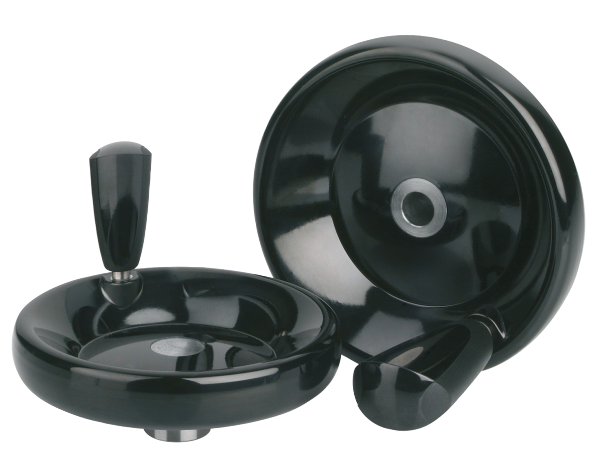 Volant plein avec poignée tournante, forme E, avec trou lisse